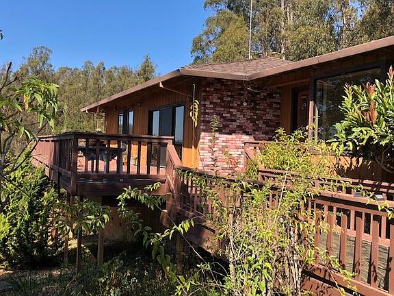 Gated ocean view single level Rancher with 2 bedrooms and 3 full bathrooms on 2.4 acres. An additional kitchen, bedroom and full bathroom are in the apartment located above the attached 3 car garage. An additional detached 3 car garage and a variety of mature trees complete the property. Natural gas (not propane) and a private well service the property. Great opportunity for contractors or car collectors. Easy freeway access.