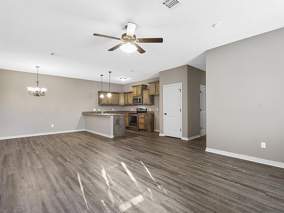 Ceiling fansSpacious bedroomsSleek stainless steel appliancesBright and inviting kitchenDecorative lightingDurable wood vinyl flooringOpen concept layout