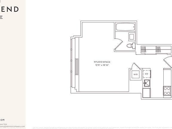 This studio has a wonderful layout. The kitchen contains granite countertops, a dishwasher, a microwave, and ample storage space in this newly renovated luxury building.