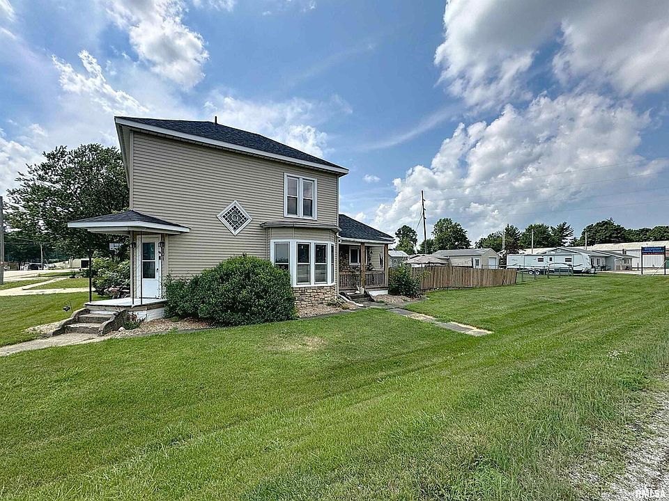 This charming 3-bed, 1.5-bath home in Alpha sits on a large 0.45-acre corner lot, seconds from a local pizzeria & grill! Inside, the main floor features a cozy living room, formal dining room with an electric fireplace framed in 1880s barn board from the seller's grandfather's barn, an eat-in kitchen, a den/office, & a combined half bath/laundry room. The mudroom showcases a unique built-in ice chest-now cleverly repurposed as a pantry-maintaining its original rear access for ice delivery! Upstairs, you'll find 3 comfortable bedrooms & a large bathroom. The fenced backyard offers both garden space & privacy, with a large partially enclosed patio. A spacious, hobbyist-friendly garage provides endless possibilities for storage, workshops, or creative spaces. A separate 2-car garage sits conveniently at the side of the home. Recent updates: new roof 2023, new water heater 2022, & replaced furnace motherboard 2022. This home is a rare blend of character, history, & functionality-schedule your tour today!