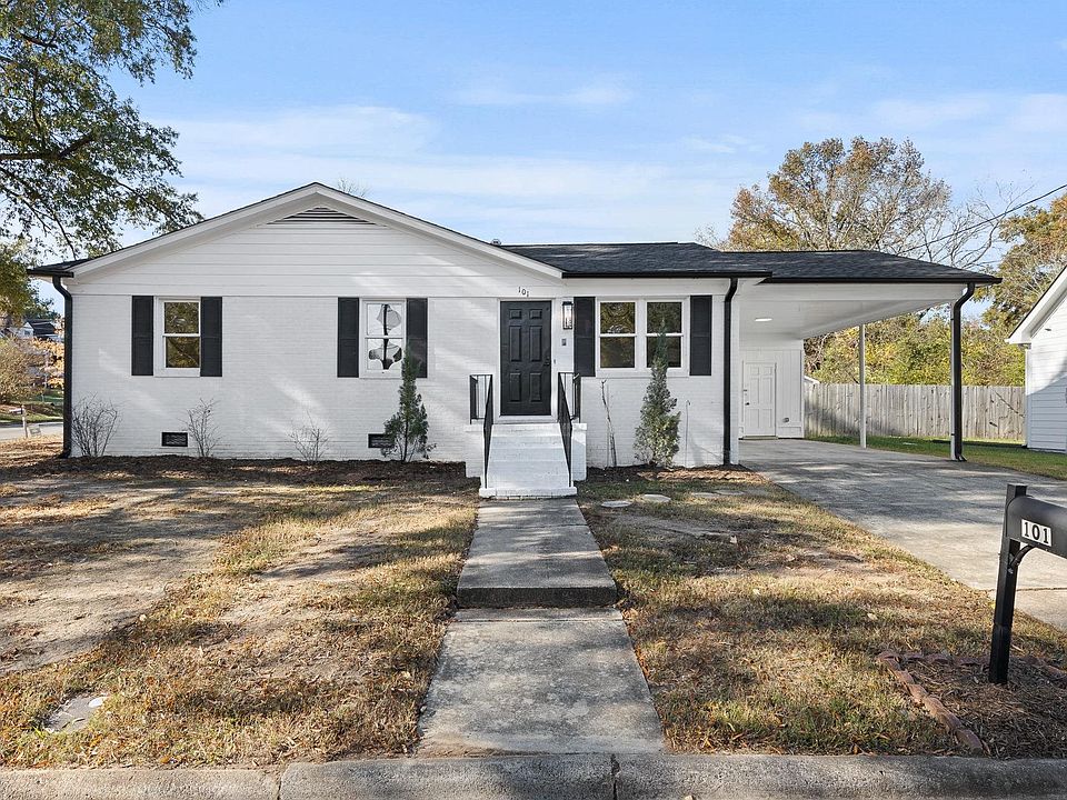 Don't miss this charming and refreshed brick ranch with carport just STEPS from the American Tobacco Trail! Walk into the large living room, great for entertaining and hosting. Wonderful dining space that connects to the kitchen which features granite countertops, dishwasher, soft-close lower cabinets, hardwoods throughout the whole home! Brand new tile in the bathroom, fresh paint throughout, hardwoods refinished. When it comes to the layout, you've got options! Use all 3 bedrooms, or use one as an office, or create a spacious owners suite by using the adjoining door between the front two rooms. 101 W Weaver will not disappoint!
