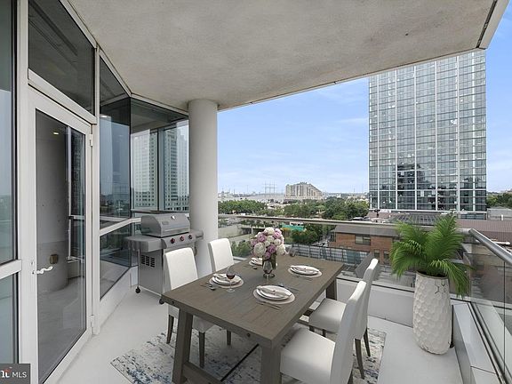 Welcome to 101 Walnut Street, Unit 6, where SPECTACULAR WATERFRONT VIEWS and refined luxury come together in one of Philadelphia's most exclusive boutique residences. This rarely available 6th-floor, two-bedroom, two-and-a-half-bath condominium offers an unparalleled living experience in the heart of HISTORIC SOCIETY HILL, complete with two PRIVATE TERRACES and GATED PARKING. Arrive via your elevator, which opens directly into a formal private entryway that leads into a massive, OPEN-CONCEPT living and dining space. FLOOR-TO-CEILING WINDOWS flood the home with natural light and offer uninterrupted views of the Delaware River, creating a stunning backdrop for everyday living and entertaining. Just off the main living area, the first private terrace is perfect for morning coffee or OUTDOOR DINING, set against the tranquil sounds and sights of the waterfront. The chef's kitchen is beautifully appointed with ample counter space, a sleek breakfast bar, and TOP-OF-THE-LINE APPLIANCES including Sub-Zero, Wolf, and Miele. Thoughtfully designed, it's as functional as it is stylish ideal for both casual meals and sophisticated entertaining. The gracious primary suite serves as a true sanctuary, featuring its own private terrace, a spacious custom walk-in closet, and a spa-like en-suite bath with high-end finishes. The second bedroom also includes an en-suite bath and generous closet space, making it ideal for guests or as a flexible work-from-home space. Additional features include HARDWOOD FLOORS throughout, HIGH CEILINGS, CENTRAL AIR, and designer touches at every turn. GATED ON-SITE PARKING offers added convenience and peace of mind. Located in a discreet, celebrity-favored building, 101 Walnut offers privacy, elegance, and exclusivity just steps from some of Philadelphia's best restaurants, cultural landmarks, Penn's Landing, and Old City galleries. Rarely does a home of this caliber become available. If waterfront views, private outdoor space, and a sophisticated lifestyle are important to you, this is a must-see.