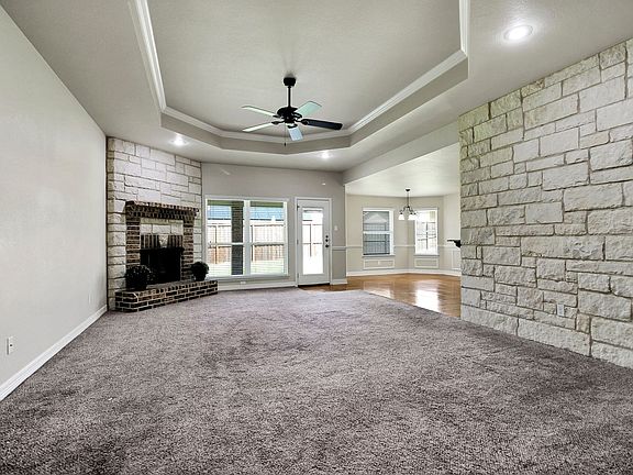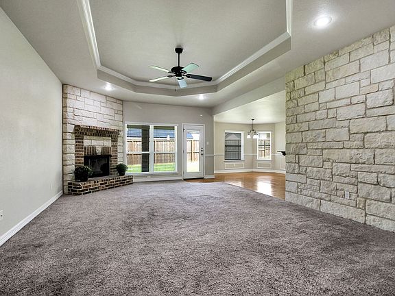 Welcome to your dream rental! This stunning 3-bedroom home with an office is the perfect blend of comfort and style, offering everything you need. As you step inside, you'll be greeted by an inviting living area featuring a cozy fireplace, perfect for chilly evenings or gathering with loved ones. The large windows flood the space with natural light, creating a warm and airy atmosphere throughout the home. The heart of the home is the beautifully designed kitchen, complete with stunning wood cabinets, a spacious center island, and ample counter space. Whether you're a culinary enthusiast or simply love to entertain, this kitchen is sure to impress! Each of the three spacious bedrooms boasts roomy or walk-in closets, providing plenty of storage space for all your belongings. The layout ensures privacy and comfort, making it ideal for anyone. Step outside to your covered back porch, a perfect spot for morning coffee or evening relaxation, and enjoy the privacy of your fenced-in backyardideal for pets or entertaining guests. Don't miss out on this beautiful rental that combines style, comfort, and functionality. Schedule your viewing today! Pet Friendly! Convenient location!