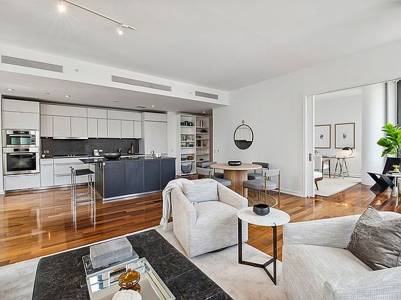 This expansive true three bedroom layout is not to miss. Enter into a formal foyer that leads to the beautiful open living and kitchen. There is beautiful walnut hardwood floors throughout. The grand Bulthaup chef's kitchen features Miele double stove/oven with five stovetop burners, Subzero stainless steel refrigerator and dishwasher. The luxurious grand master bedroom has large built in closets, en suite master bathroom with marble countertops, deep marble soaking tub, and glass enclosed rain shower. The second and third bedrooms both have their own ensuite bathrooms as well with custom built-in closets.