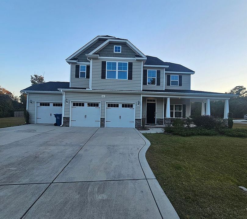 Welcome to your dream home in Sneads Ferry, NC! This stunning 4-bedroom, 2.5-bathroom property is a perfect blend of style and comfort. The house boasts a spacious kitchen equipped with stainless steel appliances, a convenient island, and sleek granite countertops. The living area features a cozy fireplace, perfect for those chilly evenings. Upstairs you will find 4 spacious bedrooms, one being the master suite which includes TWO walk in closets. The house also comes with a generous 3-car garage, ensuring plenty of room for vehicles and storage. Outside, you'll find a covered patio, ideal for outdoor dining or simply relaxing. As a resident, you'll also have access to the community pool, a perfect spot for cooling off during the summer months. This house is more than just a place to live, it's a lifestyle. Come and experience it for yourself!