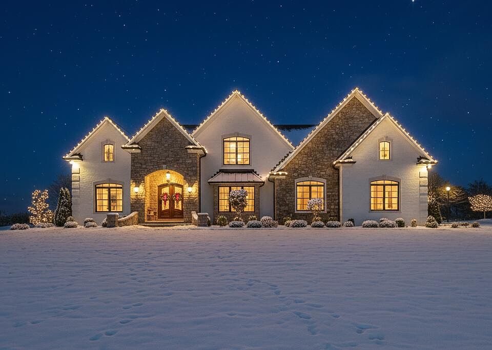 A luxurious 6-bed, 3.5-bath estate with over 5,000 sq ft of finished living space, a 1,444 sq ft finished garage, and 800+ sq ft of covered porches on a manicured 1-acre lot. Located just a half-mile from I-64, the home boasts painted Meridian brick, 3,200+ sq ft of manufactured stone, and 1,000 sq ft of paver patios. Andersen 400-Series Woodwright windows, precast stone accents, and LED soffit lighting create stunning curb appeal. Inside, enjoy a 45-SEER geothermal system, smart thermostats, Rockwool insulation, and energy bills averaging just 207/month. The resort-style backyard features a heated 20x38 pool, hot tub, gas fire pit, pool bath, and 6' privacy fence. Chef's kitchen includes Kraftmaid cabinets, quartzite counters, Sub-Zero/Wolf/Cove appliances, and hidden pantry. Interior finishes include custom showers, tray ceilings, solid trim, and Poplar closet systems. Added luxuries: 4-car garage, security system, attic storage, tankless water heater, and premium fixtures throughout.