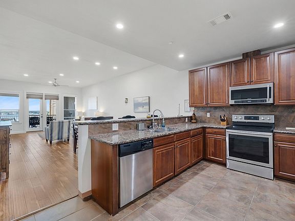 Located along the waterfront at The Waters in Horseshoe Bay Resort, this residence offers a sought-after setting just steps from the Yacht Club, marina, resort pool, and the lakeside promenade. The interior is bright and well-planned, with a comfortable open layout that connects the kitchen, dining, and living areas. Large glass sliders draw the eye outdoors to a covered patio overlooking the water, creating an easy flow for relaxing or gathering with friends. The primary suite includes patio access and a private bath with dual vanities and a walk-in shower. Two additional bedrooms provide flexibility for guests or additional living space. Community amenities include a lagoon-style pool with shaded seating areas, outdoor grilling stations, and convenient fishing docks along the shoreline. The residence also includes a covered parking space within the secured garage. A low-maintenance lakefront home with direct access to the core attractions and recreational offerings of Horseshoe Bay Resort. Ready for personal use, full-time living, or as a strong candidate for the resort’s rental program if desired.