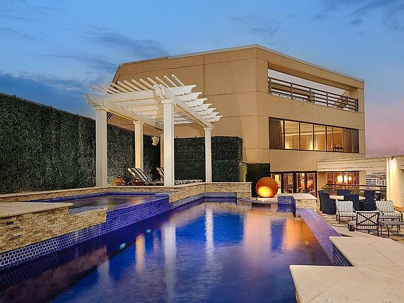 Outstanding contemporary penthouse in the Bayou Bend Towers w/panoramic views of Buffalo Bayou, the River Oaks Golf Course & downtown Houston! The main living area offers sky high ceiling heights, marble floors, a Savant automation system, & a full bar w/adjacent glass Nano doors that open to an infinity pool & wraparound rooftop patio w/stunning views as your backdrop. There's a 1 bedroom/full bath casita off the pool area as well. The sleek kitchen w/SubZero, Miele & Gaggenau appliances features plenty of prep & cabinet space. Both the breakfast room & formal dining are surrounded by enormous windows & gorgeous finishes. Owner's retreat on the 1st floor has iconic views, an elegant bath & 2 luxurious walk-in closets w/built-ins; there's also a media room on this level, as well as a study that could be a 5th bedroom. The 3rd floor has 2 guest bedrooms w/amazing en-suite baths & walk-in closets. Amenities include a concierge, valet, tennis courts, fitness center, pool & walking trails.