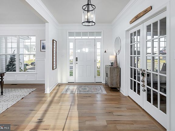 Welcome to your dream home in Woolwich Township! This exquisite property, just two years young, boasting modern elegance and thoughtful design at every turn. Situated on a spacious corner lot, this NEWER Winterberry model by Chisuano Homes is a 4 bedroom, 2 1/2 bath, office, plus a finished basement that offers the perfect blend of comfort and sophistication. As you approach, the charming front porch beckons you to come and sit awhile, the front elevation is so impressive with dormers and stone base at the water table. Step inside, and you'll be wowed with grand open foyer, wood staircase and an inviting hall entry. French doors lead you to the formal living room and or study. You'll love to entertain in the formal dining room featuring board and batten walls, designer lighting and a lovely butler station for coffee/cocktails and includes a wine refrigerator and display cabinetry. The home truly is a showcase of new designer finishes, featuring luxury vinyl flooring, board and batten walls, and quartz countertops that exude contemporary style. The two-story family room is bathed in natural light with a wall of windows and gas fireplace creating an inviting atmosphere for gatherings. The gourmet kitchen is a culinary haven, complete with an oversized counter and upscale finishes; quartz counter tops, stainless gourmet kitchen appliance package with wall oven and cook top ensuring a perfect blend of form and function. The bright breakfast room features a convenient walk out for your alfresco dining on the patio under the pergola! The first floor includes a very nice laundry room with cabinetry and built in folding table, a first floor study ( currently the play room) and a convenient half bath. The Primary bedroom is beautiful and neutral with tray ceiling and fan, a large walk in with custom closet built in and an additional closet. The En-suite is so pretty with double bowl vanity, tile flooring and oversized tile shower. The additional bedrooms are all good in size and includes blinds. Entertain with ease in the spacious finished basement that includes an additional home gym area and still plenty of storage space. The Ridings Community is still building. Imagine having a new home completed with all of the upgrades done for you! Included BONUS features: 2 Zoned HVAC, irrigation system, Patio, paver accent wall, pergola, trash enclosure, garage door openers, SHED, playset, blinds, 4 Ceiling fans, rear window tinting at back of house, newer washer, dryer, and refrigerator all simplifying your move-in process! Come and experience this new community with convenient nearby shopping centers, a brand new shop rite and quick access to N.J. turnpike, Route 295 and just 25 min. to Phila. Serviced by Kingsway School district. This home is not just a property; it's a lifestyle. Experience the comfort, convenience, and luxury that this Woolwich Township residence has to offer. Don't miss the opportunity to make this impeccable home yours!