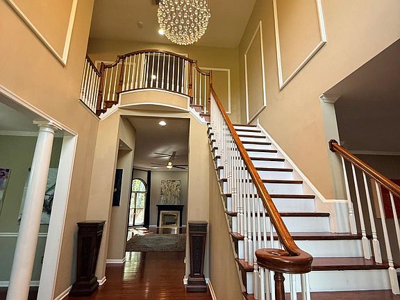 Welcome to 101 Whistling Wood Court, where architectural elegance and modern comfort converge in the prestigious gated enclave of Farmington Woods. Poised on a beautiful cul-de-sac lot and surrounded by tranquil woods, this custom estate is well over 6,000 sq ft and offers the sophistication and serenity of luxury living—just minutes from Washington, DC and Virginia. Step through the door into a dramatic two-story foyer, where soaring ceilings and sweeping light set the tone for the home’s refined design. Formal living and dining spaces transition seamlessly into a stunning great room anchored by floor-to-ceiling Palladian windows, framing nature like art. The gourmet kitchen, a centerpiece for entertaining, features expansive prep space and direct access to a sprawling deck overlooking a lush wooded backdrop. Upstairs, retreat to an owner’s sanctuary designed for indulgence — complete with a private sitting area, double-sided fireplace and a spa-inspired bath. Three additional bedrooms offer both comfort and privacy for family and guests, featuring a shared Jack-and-Jill bathroom and a third bedroom with its own private ensuite. The fully finished lower level is an entertainer’s dream, showcasing a custom wet bar, elegant library, two additional bedrooms as well as five mounted televisions and a pool table all of which convey for endless enjoyment. The walk-out patio provides effortless flow between indoor luxury and outdoor relaxation. This estate sale is strategically priced — a remarkable opportunity to secure a luxury residence with built-in equity. Offered AS-IS, this home delivers timeless craftsmanship, scale, and value rarely found at this level.