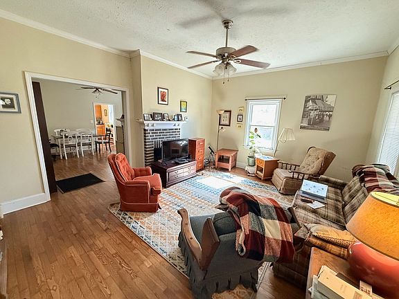 This charming older home has been beautifully refreshed throughout, featuring an updated spacious kitchen, dining room, central HVAC, modern flooring, and a convenient washer/dryer. Enjoy the inviting front porch and take advantage of ample storage and parking in the covered garage.