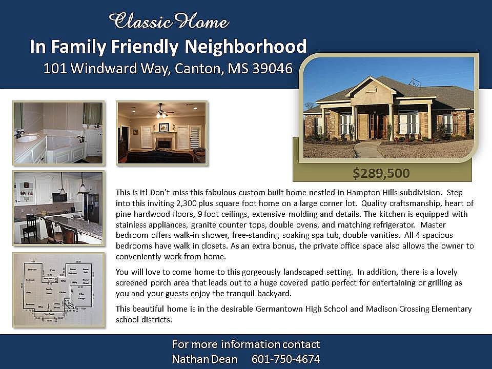 Classic Home In Family Friendly Neighborhood! This is it! Do not miss this fabulous custom built home nestled in Hampton Hills subdivision. Step into this inviting 2,300 plus square foot home on a large corner lot. Quality craftsmanship, heart of pine hardwood floors, 9 foot ceilings, extensive molding and details. The kitchen is equipped with stainless appliances, granite counter tops, double ovens, and matching refrigerator. Master bedroom offers walk-in shower, free-standing soaking spa tub, double vanities. All 4 spacious bedrooms have walk in closets. As an extra bonus, the private office space also allows the owner to conveniently work from home. You will love to come home to this gorgeously landscaped setting. In addition, there is a lovely screened porch area that leads out to a huge covered patio perfect for entertaining or grilling as you and your guests enjoy the tranquil backyard. This beautiful home is in the desirable Germantown High School and Madison Crossing Elementary school districts.