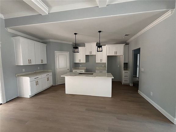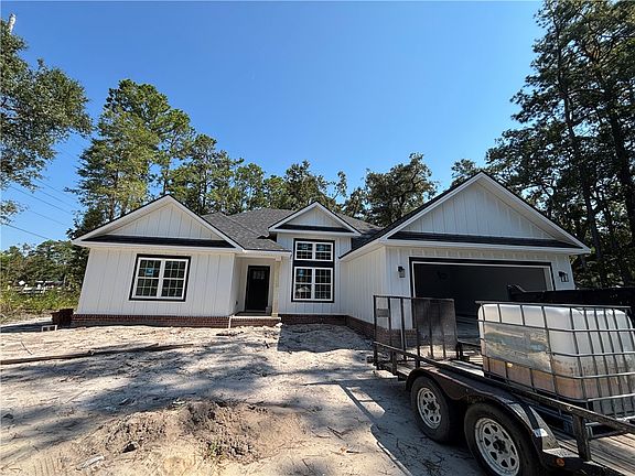 Discover this brand-new construction home with no HOA and located in an X-flood zone for added peace of mind. Offering 1,894 square feet, this thoughtfully designed 4-bedroom, 2.5-bath residence sits on a generous 0.81-acre lot with a stylish Hardiplank and brick exterior. A welcoming foyer leads to the dining and living rooms, all boasting high ceilings and luxury vinyl plank flooring throughout. The living room is highlighted by elegant trayed ceilings, while the split-bedroom floor plan ensures privacy. The kitchen impresses with a large island, pantry, and stainless-steel appliances. The spacious primary suite features a walk-in closet with custom wood shelving, plus an ensuite bath with dual vanities, a separate tiled shower, and a soaking tub. Three additional guest bedrooms, a convenient laundry room, and a powder room complete the interior. Enjoy outdoor living on the back porch overlooking a yard framed by gorgeous trees and take advantage of the two-car garage for ample storage and parking. Estimated completion date October 2025!