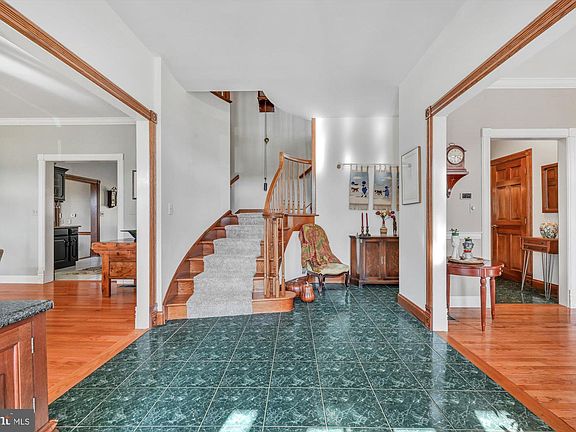 Custom built and meticulously maintained with excellence, this 4 bedroom, 4 ½ bath, 2-story exceptional home is situated on a landscaped 1.1 acre corner lot. Welcoming to all, a large porch and sun drenched foyer opens to formal dining room equipped with a woodburning fireplace & hardwood flooring and an office or den boasting crown molding. A custom gourmet kitchen with abundant cabinet space will be an inspiration to any chef, highlighting updates like granite counters with a tile backsplash, a large center island, Jenn Air appliances, and separate wet bar/beverage center with a refrigerator. Bright & pleasant, a breakfast space overlooking the private backyard offers serene vistas for a morning coffee, or casual dining. A sunken first floor family room with a floor to ceiling brick fireplace & French doors leading to the private yard, a laundry room, & ½ bath complete the first floor. On the second level, enjoy a spacious primary suite featuring a sitting area, separate office, elegant ensuite bathroom equipped with a large soaking tub, dual vanities, a walk-in shower and two oversized walk-in closets. Three generously sized bedrooms & two full bathrooms complete the second floor. The fully finished lower level includes a fitness area, an expansive recreation room, a full bath & abundant supplementary storage. Replete with an oversized 3 car attached garage and a separate work area make this home a must see. Contact us today to schedule a private viewing to appreciate the quality throughout this meticulously maintained home.