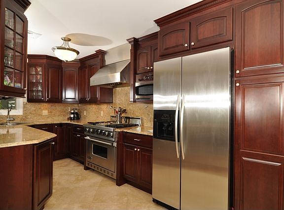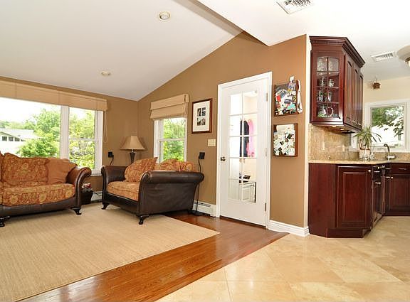 This wonderful newly renovated home offers a circular driveway and a custom addition built in 2004. Offers 4 bedrooms with designer built-ins, 2.5 baths which overlook beautiful picturesque landscaped gardens. A 16 x 36 foot stone terrace with an outdoor built-in BBQ and refrigerator. Spacious rooms, hardwood floors, kitchen with granite counters & stainless steel appliances, Viking stove, custom Cherry cabinets. Sun-filled family room overlooks rear yard. Finished lower level recreation room with built-ins & plenty of storage. Private yet close to all.