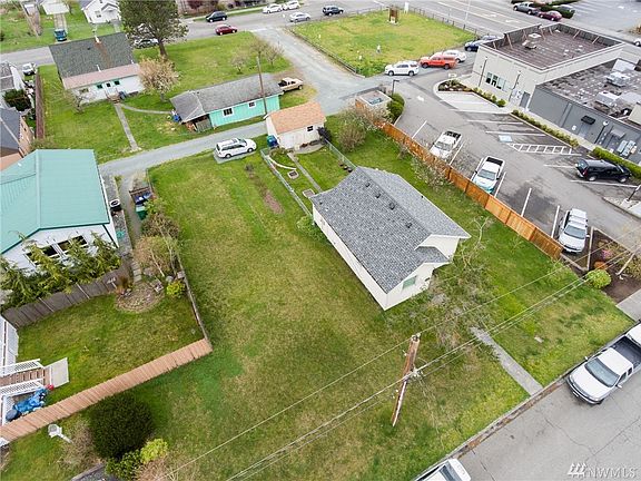 Charming home with fantastic central location! 2 bedroom, 1 bath home features cozy living spaces that live big. Large kitchen with dining area and great outbuilding for extra storage or studio. Large fenced yard with plum, apple and quince trees and a partial view of Mount Baker. Commercial and R4 zoning offer many possibilities for this 9,000+ sqft property. New roof in 2017.