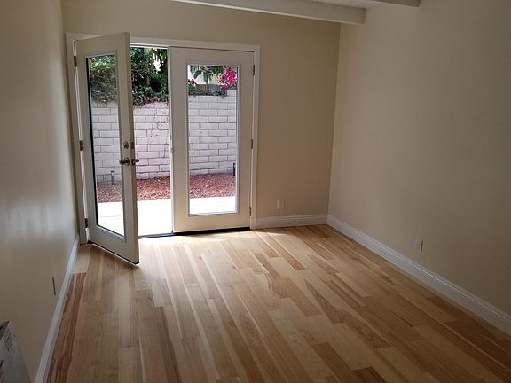 Totally remodeled unit with all hardwood floors, all new kitchen appliances, 1 car garage and small backyard space Owner pays for Trash.