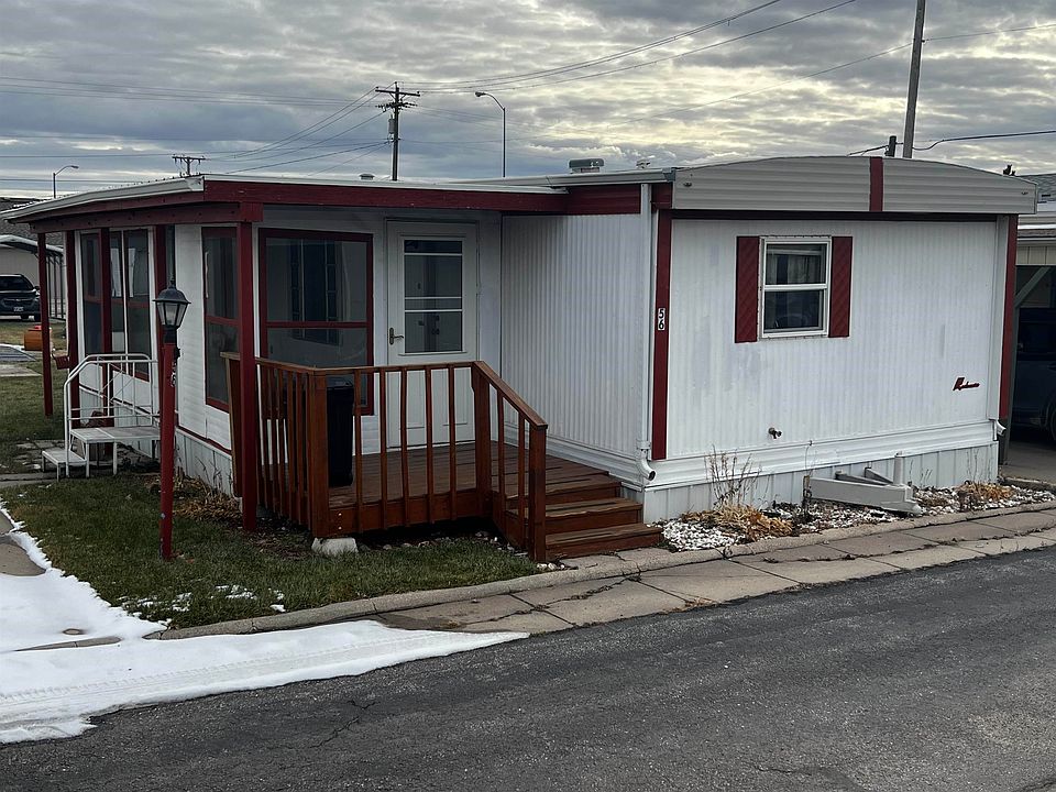 Looking for a comfortable and affordable retirement living option? This 2-bedroom, 1-bathroom mobile home in a 55+ community is the answer! Nestled in a serene setting with a well-manicured yard and an enclosed garden patio, this home provides the peace and tranquility you deserve. The 55+ community offers a relaxed and welcoming atmosphere for retirees. Enjoy the company of like-minded neighbors and the convenience of living in a community tailored to your needs. One of the standout features of this property is the remarkably low lot rent, priced at just $400 per month. This includes water, sewer and garbage making it a great value! Located in a prime location, you'll have easy access to shopping and restaurants, ensuring that all your daily needs are met without hassle. Don't miss this opportunity to secure an affordable and comfortable retirement home in a fantastic location. Buyer must apply for background check and application. Call Kris at 605-342- 8177, Kris, Park Manager for application details.