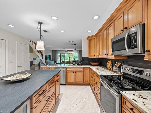 Imagine living in beautiful Olde Naples where you can walk to the beach for sun and fun. Enjoy gorgeous sunsets from your balcony or stroll along the beach as the sun goes down on the city. Walk to restaurants, shops, or even to the bay to fish or have a leisurely boat ride or jet ski ride just minutes away. This completely remodeled, professionally decorated, townhouse style condo is in the perfect spot to do just that. Kitchen has soapstone and granite counters, plenty of quiet close cabinets and drawers for storage, a large walk-in pantry, wine cooler and stainless appliances. The living area is spacious to enjoy a quiet evening or open up the sliders to the tiled lanai and enjoy the fresh air. The bedrooms are upstairs with laminate flooring. The owner’s suite boasts a walk-in closet, walk-in shower, dual sinks and a balcony. Guests can enjoy a spacious bedroom and bathroom with tub/shower. Other features: carport, storage, utility tub, impact glass, screened front door, lovely powder room, tiled lanai, beautiful landscaping, community pool. What are you waiting for? Come see it today.