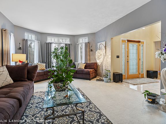 This beautiful four-bedroom home sits on a tree-lined lot of 1.5 acres. As you enter, you'll be welcomed into a spacious living area with hardwood floors, a fireplace, and high ceilings, enhanced by two stories of large, modern cathedral-style windows that fill the space with natural light and offer views of the backyard and private woods. The first floor also includes an office, perfect for working from home. Upstairs, you'll find four generously sized bedrooms, including a master suite with walk-in closets and a bathroom featuring dual sinks and a jacuzzi tub. The home also boasts a full unfinished basement with high ceilings, offering plenty of potential for customization. Additional features include a 3-car garage and a spacious patio space finished with beautiful stone accents. This property wont last long come and tour it before it's gone!