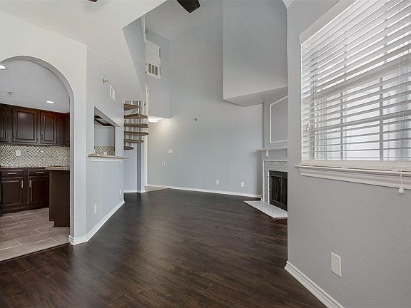 STUNNING 1 bedroom split-level loft just STEPS from Downtown, uptown and Deep Ellum! Location, Location, Location! This fully renovated home may be small but feels SO much bigger! Downstairs offers HUGE living space with fire place, open kitchen with gorgeous granite and stainless steel appliances, enclosed patio sun room and cozy spiral staircase. Upstairs you will find the same beautiful hardwood floors, large bedroom space with city views, dual vanity sinks and amazing OVERSIZED walk in closet! Secured garage located underneath building with one reserved spot available for this unit. Washer and Dryer included. NO pets will be accepted. Water included in monthly rent