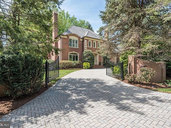Magnificent 9 Bedroom, 7 full and 2 half bath home on private, fenced and gated lot. This exquisite property personifies stately, grand and home all in one. The main level features a grand foyer with marble flooring, large dining room, elegant living room, richly paneled library, oversized family room with built-in wet bar and two French doors to the deck, chef's kitchen with island and breakfast room! Two half baths, a mudroom, 4 car garage, and a guest suite kitchenette with two Juliette balconies finish off the lower level. On the upper level there is a sumptuous master bedroom suite with sitting area, two walk-in closets, and newly renovated, spa-like master bath with two separate vanities, two separate water closets, soaking tub, separate glass enclosed shower, and two linen closets. Additional upper level features include five bedrooms, two bathrooms, and a cedar closet. On the upper level of the guest wing/staff quarters are two bedrooms and a full bath. the daylight, walkout fully finished lower level includes a huge recreation room, bedroom with full bath and walk in closet, an exercise room with sauna and full bath (with exterior access to the pool deck), wet bar, and two storage rooms. The recreation room opens up to the covered patio and heated pool with hot tub and swim up bar, and stone fireplace.