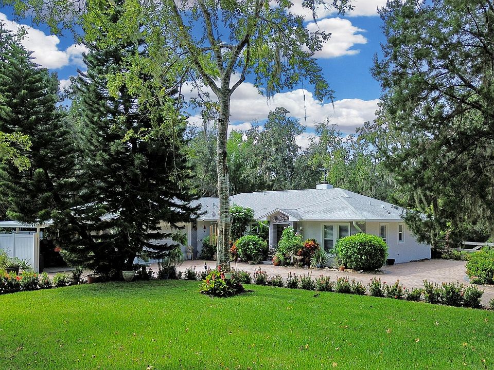 Experience the perfect blend of privacy, space, and coastal living in this beautifully upgraded New Smyrna Beach retreat just minutes from the beach, shopping, and dining! Nestled on a peaceful 1.38-acre property, this concrete block 3-bedroom, 2-bath home is surrounded by lush landscaping, mature shade trees, and a tranquil pond with a fountain—your own private oasis. Inside, you'll find a bright and spacious split floor plan with vaulted ceilings, elegant crown molding, and a cozy fireplace that makes the great room feel instantly welcoming. The renovated kitchen and baths feature stylish stone countertops, nice cabinetry, and stainless steel appliances, while French doors open to a 43' back porch and paver patio—perfect for relaxing or entertaining with stunning pond views. A separate family room offers flexibility for a home office, movie room, gym, or playroom. Additional highlights include indoor laundry, a tankless water heater, and immaculate landscaping bursting with flowers. The fully fenced yard is ideal for pets, and there's ample parking with an oversized 2-car garage, 1-car carport, and circle paver driveway with extra space for guests, RVs, or boats. Enjoy the peace of country-style living just minutes from the ocean in this beautifully maintained homea true New Smyrna Beach gem! All measurements are approximate.