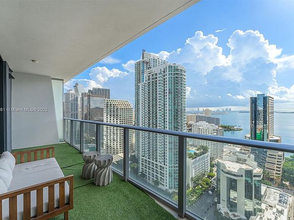 Welcome to your dream home. This Brickell property literally has it all, starting with sweeping direct views of the Bay from the living room, kitchen and both bedrooms. The residence has so many unique features including a private elevator that opens directly into your home, a large den and three full bathrooms. It can also be purchased furnished taking advantage of the impeccable finishes added by the Owner. The buildings amenities include a rooftop pool with staffed bar, outdoor movie theater, indoor and outdoor swimming pools, indoor and outdoor hot tubs, a cold plunge, co-ed spa including hammam and dry sauna, kids play area visible from the gym and so much more. Approved for financing at 25% down with preferred Mortgage Broker and Title Company.