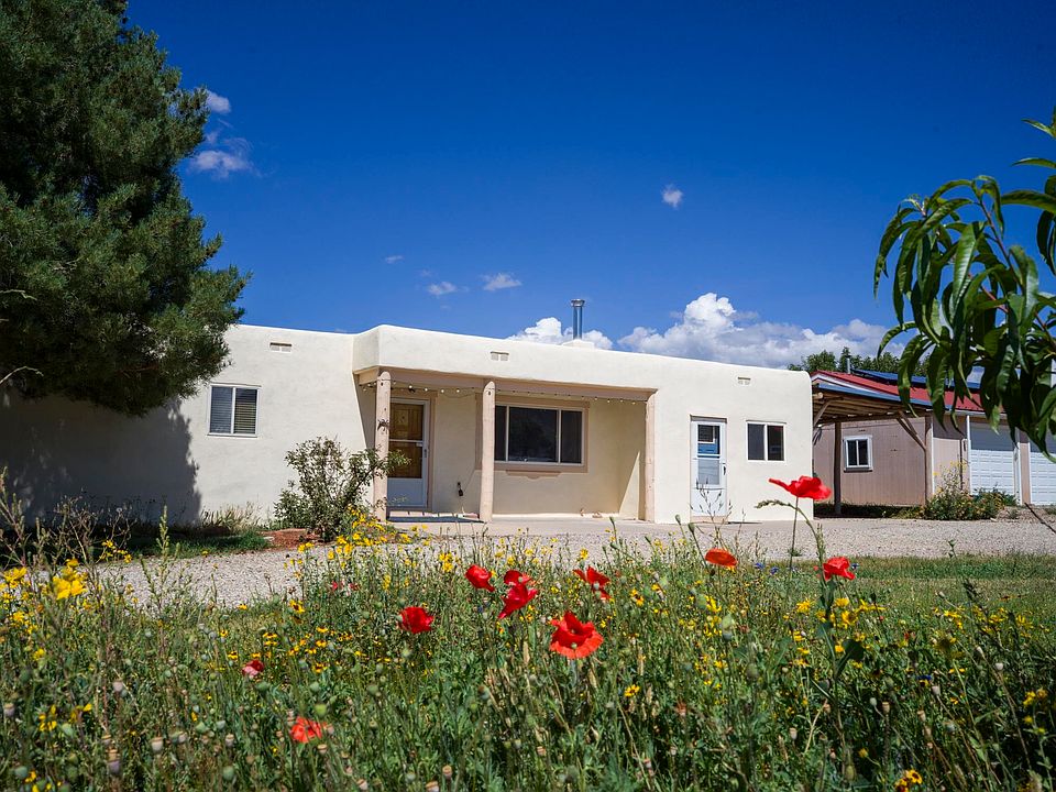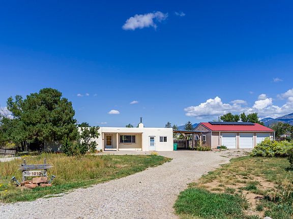 Discover exceptional value, prime location, and endless possibilities with this beautifully maintained 3-bedroom, 2-bath home in an established Taos neighborhood. Spanning 1,860 sq. ft. on one lush acre, this bright and cheery residence offers ample space with a dedicated family room and office, plus a finished 3-car garage and carport. Enjoy remarkably low utility costs thanks to solar panels that "bank" energy with Kit Carson, economical natural gas heating, and affordable community water. You'll also have the convenience of a private well for irrigating your lawns, shrubs and fruit trees. This home is perfectly sized for a growing family, accommodating grandkids and guests, or providing ample room for hobbies and a home business. The fenced yard ensures privacy and a safe haven for children and pets, while everyone will love the fresh fruit from your own apple, peach, pear, and cherry trees. The light-filled family room includes additional storage, and a bonus room with its own entrance offers flexibility as an office, music studio, or whatever you envision. You'll love the finished 3-car garage, complete with a wood-burning stove and ample workspace. It's perfectly suited for home projects, setting up a ping-pong table or game room, and/or providing generous extra storage. So many opportunities await. Please call for a private showing and to discover more!!
