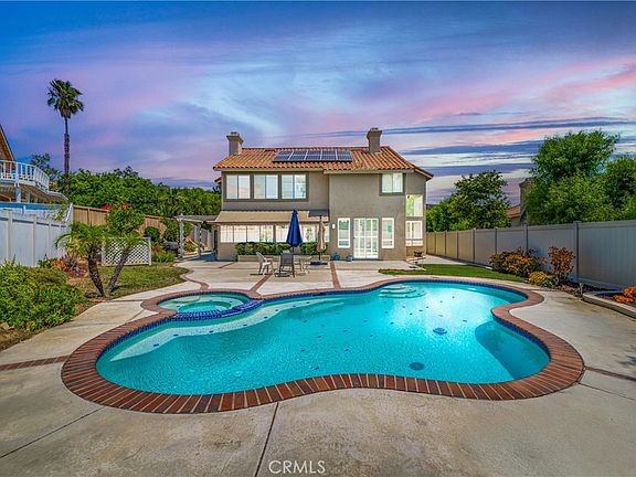 Professional photos have been removed for privacy. Step through the double door entry into a bright, open layout with soaring vaulted ceilings that stretch across the formal living room, formal dining area, entry, and downstairs bedroom—creating an airy and inviting atmosphere from the moment you arrive. Natural sunlight enhances the space, highlighting the spaciousness and architectural charm throughout. This 5-bedroom, 3-bathroom home includes a large downstairs bedroom with a full bathroom nearby, offering flexibility for guests, multigenerational living, or a dedicated office. The heart of the home is the refreshed kitchen, featuring an abundance of cabinetry—more than most kitchens in the area—and a full wall of windows overlooking the private backyard retreat complete with a pool and spa. Upstairs, you'll find four additional bedrooms, including a generously sized primary suite with its own full bathroom, plus a second full bathroom to serve the remaining upstairs rooms. Whether you're hosting or relaxing, this layout offers plenty of room for everyone. The property is equipped with a paid-off 10-panel solar system, a rare 4-car garage, and an extra-wide driveway—ideal for multiple vehicles or guests. The home also enjoys beautiful curb appeal, and with no front-facing neighbors, you get added privacy and even more available street parking. Located in the highly desirable Corona Hills community, this home is perfectly positioned for convenience. You'll be just minutes from major retail centers, dining options, and entertainment—including Costco, The Crossings, and Hidden Valley Plaza. Commuters will love the easy access to both the 91 and 15 freeways, and families will appreciate the nearby parks and highly rated schools. With its spacious layout, excellent location, and standout features, this home offers a lifestyle of comfort, convenience, and potential.
