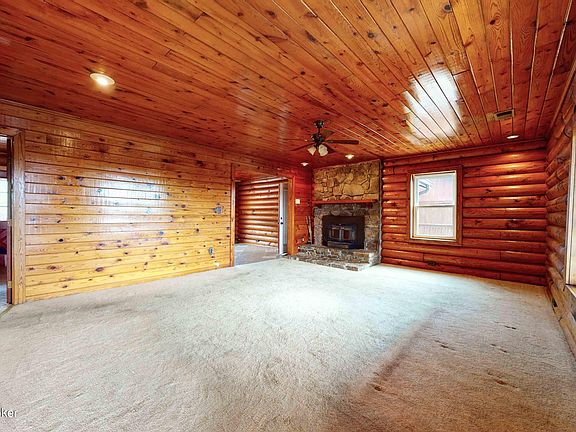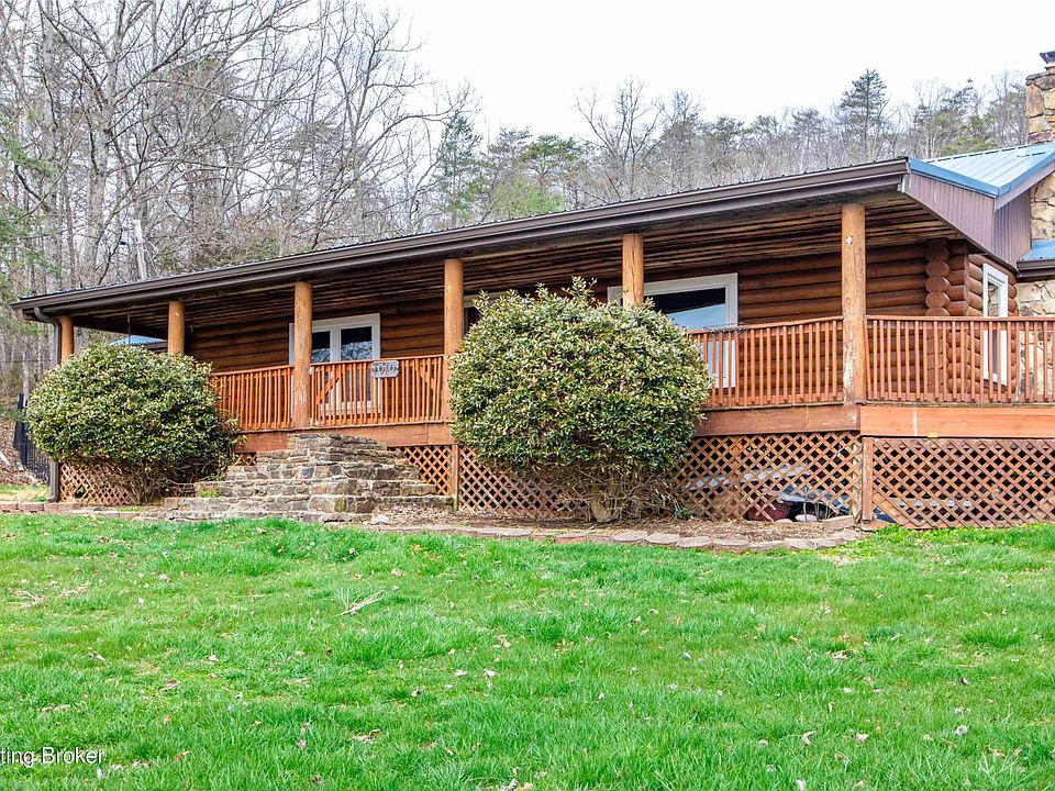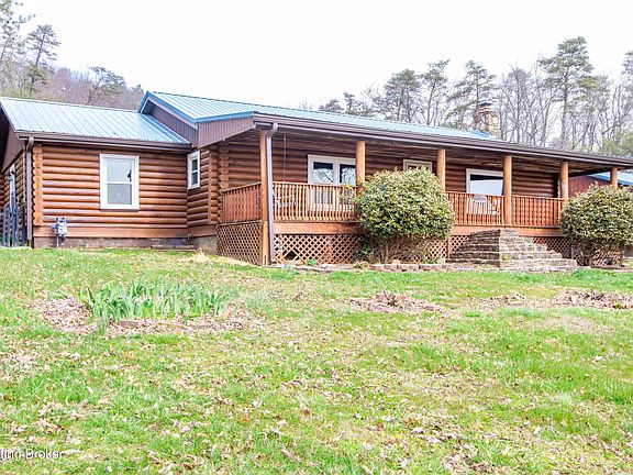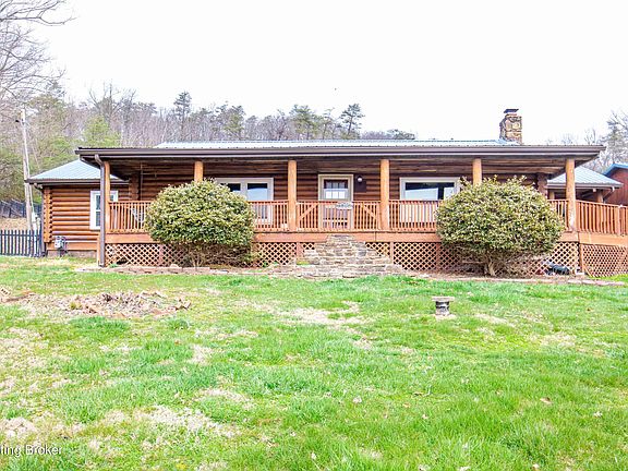 Come check out this unique log cabin home that's just a short drive to Shepherdsville. Home features 3 bedrooms/ 2 baths, living room with fireplace, detached oversized garage, newer windows and 2 acre corner lot. Enjoy the view from the wrap around front porch.