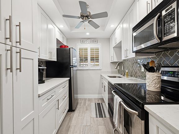 Located iat the end of a Cul-De-Sac and in close proximity to the pool, discover coastal elegance in this fully remodeled 1-bed, 1.5-bath villa with a spacious den, ideal for a second bedroom or office. Only a 5-min drive from the beach in High Point's vibrant 55+ community. Upgrades include new windows with plantation shutters, sleek tile floors, and a modern kitchen featuring white shaker cabinets, quartz countertops, stainless steel appliances, and a convenient Murphy bed. Enjoy community amenities like multiple pools, bocce courts, BBQ grills, picnic areas, and a stunning clubhouse. Whether you're seeking a permanent home or a winter escape from the North's harsh winters, this villa offers an ideal destination for coastal living at its finest.