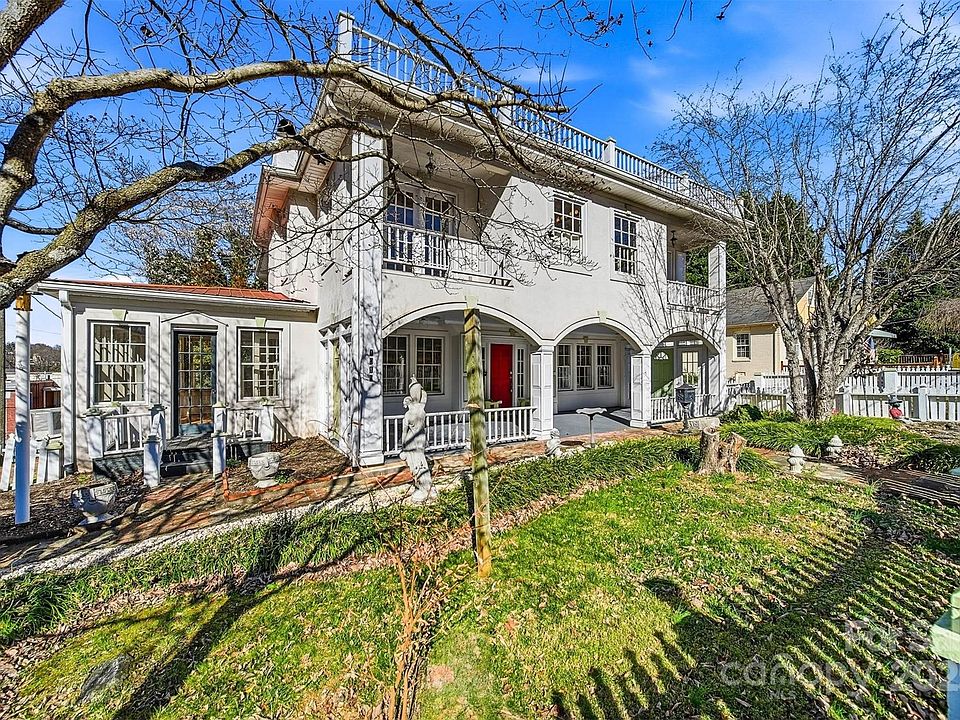 Step into timeless elegance with this stately 1945 NEOCLASSICAL-STYLE residence set in the heart of DOWNTOWN LENOIR. Offering 6 bedrooms and 4 bathrooms, this GRAND HOME blends historic character with flexibility. Built to entertain! Numerous fireplaces throughout the property add warmth, charm and historic character! Enjoy gatherings of all sizes on the home's massive covered front porch, a true extension of the living space. Offering room for dining, lounging, and hosting guests in every season. The home welcomes you with a grand entrance with a graceful transition into the main living areas. The main level offers a study, dining room, large living room, sunroom, main level primary bedroom with a 2nd bedroom or private dressing room and a main level laundry room. The beautiful kitchen features a spacious island, butler's pantry, tiled backsplash, apron front sink, large walk-in pantry & an inviting breakfast room. The upper level offers 4 additional bedrooms, 2 with sitting areas/dressing rooms, private ensuite bathrooms and balconies as well as a centrally located bathroom with a 2nd laundry center. The basement provides storage or space for a workshop. The zoning will allow office or professional use, ideal for those who want to live and work under one roof. A rare opportunity to own a landmark-style property with endless potential. Located in the Foothills of the NC Mountains within walking distance to shopping, restaurants and more! A true classic beauty with enduring charm and elegance! An easy drive to Blowing Rock or Hickory!!! A little over an hour's drive to Charlotte Douglas Airport!