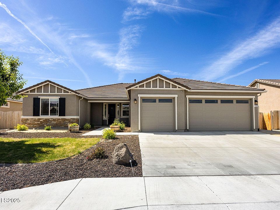 Welcome to this stunning single-story home featuring an open-concept design that perfectly blends style and functionality. Built in 2021, this residence offers five spacious bedrooms and three full bathrooms, providing plenty of room for family, guests, or a home office setup. Step inside to find bright, airy living spaces filled with natural light, ideal for entertaining or relaxing in comfort. The modern kitchen flows seamlessly into the dining and living areas, creating a perfect gathering space. Outside, enjoy a spacious, landscaped yard complete with a covered patio and charming pergola — perfect for outdoor dining, relaxation, or entertaining year-round.