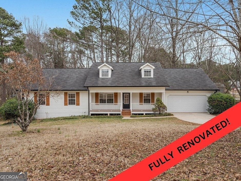 Beautifully renovated home in the desirable Monticello neighborhood. NEW heating & air, NEW exterior & interior paint, NEW flooring throughout, NEW quartz countertops in the kitchen AND all three full bathrooms, NEW light fixtures, NEW blinds - the list goes on. This house has been meticulously renovated to be your forever home just outside of Atlanta. This McDonough gem boasts 5 large bedrooms, 3 full bathrooms, a large 2-car garage AND a huge unfinished basement with a bonus 1-car garage. You'll fall in love as soon as you walk from the charming rocking chair front porch into the large living room with a stone fireplace and access to the back deck. Off of the foyer is the dining room that opens up to the freshly renovated kitchen with new quartz countertops, stainless steel appliances, and a breakfast nook with large bay windows. Down the hall from the living room you'll find a large master bedroom with a renovated en-suite bathroom and walk-in closet, two additional bedrooms that are a generous size, and a fully renovated hall bathroom. As you make your way upstairs there are two more huge bedrooms, another living room, and a fully renovated bathroom. To cap it all off your new dream home has a massive unfinished basement that could be finished out for even more living space, a mother-in-law suite, or kept unfinished for storage space. All of this in a peaceful and quiet neighborhood that is positioned in an amazing location with sought after schools. The perfect suburban home that is only 25 minutes to the airport and 10 minutes to downtown McDonough.