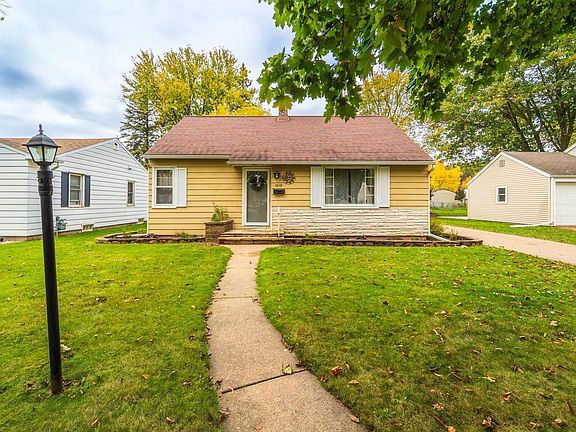 Welcome to this adorable Cape Cod-style home nestled in a tranquil east side location within walking distance from two parks and a serene nature preserve walking trail. Featuring classic aluminum siding with eye-catching Lanon stone accents on the front as well as landscaping that shows this home offers great curb appeal & character! There is a 1+ car garage with a concrete driveway for easy maintenance. Step inside through the charming front entry with a coat closet into a spacious living room filled with natural light from large picture windows. Wonderfully refinished hardwood floors span throughout most of the main floor. Dimmable lighting sets the perfect mood for relaxing evenings in the living room. You'll find two bedrooms on the main floor; one bedroom has a walk-in closet. A beautifully refinished full bath with tub/shower combo is on the main floor and has dimmable lights, ideal for unwinding in your own spa-like tub retreat. The bright eat-in kitchen features updated countertops, oak cabinetry, a brand-new microwave, and all appliances included. A convenient side do