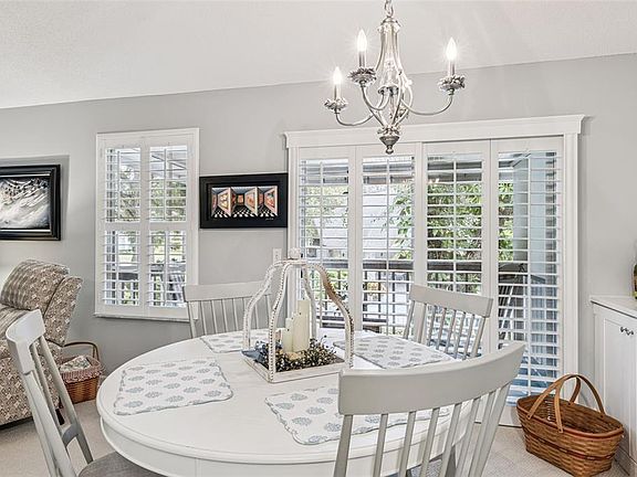 You will find this STYLISH, welcoming home MOVE IN ready and the SELLER is very MOTIVATED. The living, dining and kitchen areas have high ceilings with functional, spacious room layouts which offer endless entertaining opportunities. The kitchen is a home chef's dream, Carrara QUARTZ countertops, GE Profile appliances, a double oven with convection option, tiled backsplash and lots of cabinetry. Steps away you will find the BONUS butler's pantry measuring 6x4 with built-in shelving to store small appliances, pots, pans, serving dishes, etc.. Dining room has BUILT-IN cabinetry with a roomy pantry. Bedrooms are split from the living areas for complete privacy. Laundry closet with stackable WASHER/DRYER included. UPGRADES made 2019 - a/c, 2021 - completely remodeled kitchen, 2023 - electric water heater and ensuite bath featuring ceramic plank flooring, single sink vanity and gorgeous walk in shower stall and 2025 - air ducts were cleaned. Cozy, screened balcony with roll down privacy screens overlooks the resort like community pool and cabana. Garage has an attic space and overhead storage hangers. This property is conveniently located near major roadways, medical facilities, local attractions, shopping, dining and two international airports.