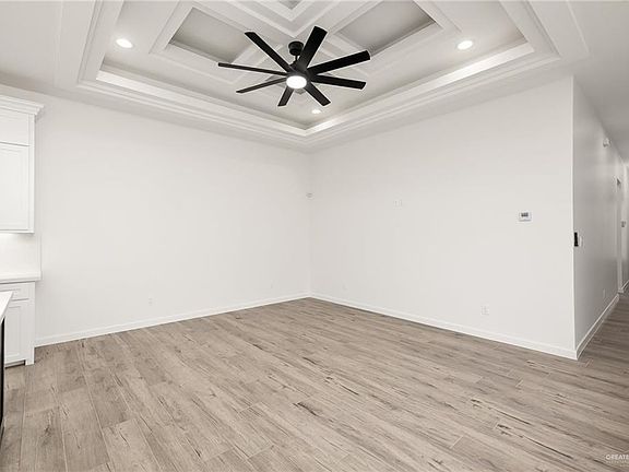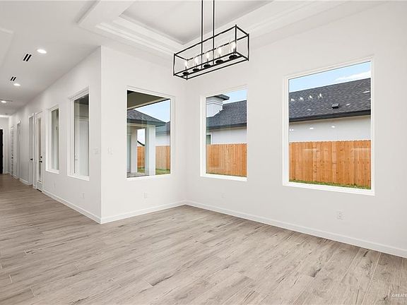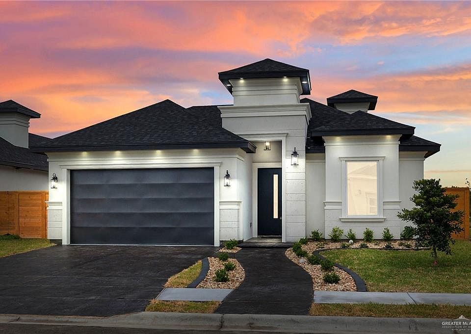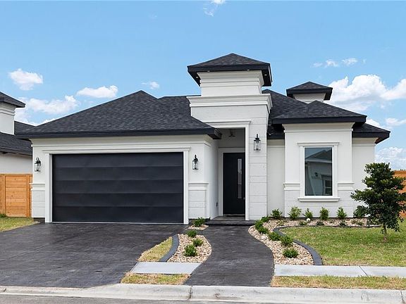 Discover this gorgeous new construction located in the newly constructed gated community of Lantana Landing in Mission, TX. This stunning home offers 2,100 sqft of living space, featuring 4 bedrooms and 3.5 baths. The modern design includes unique ceiling details, cool toned tile flooring, and a versatile 2-car garage that opens on both ends. The side courtyard design provides ample backyard space, perfect for intimate gatherings or various outdoor activities. The beautiful kitchen is equipped with custom cabinets and quartz countertops. Notable features include spray foam insulation in all walls and the attic for enhanced energy efficiency, durable Stucco walls, a sprinkler system, and modern LED daylight lighting. Enjoy spacious walk-in closets throughout every bedroom! A beautiful primary walk-in shower, featuring a soaking tub. Park in style on your very own color stamp driveaway, perfect for the contrasing walls. This home is a blend of elegance and practicality.