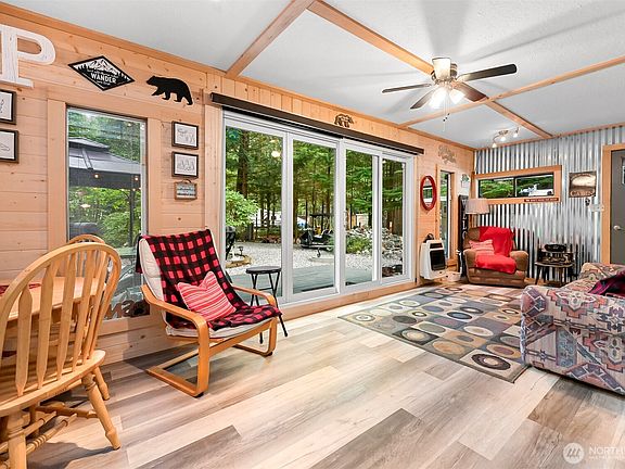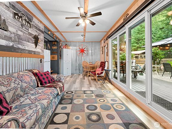 Turn weekends into adventures! Charming turn-key 1-bedroom retreat that actually sleeps 6+ with pull-outs in 2 different living areas! Fully fenced & tastefully updated lot in gated community with indoor pool, clubhouse, BMX track, playgrounds & more. Gather under the covered gazebo, BBQ on the new deck, and store all your gear in multiple sheds. Low-maintenance gravel yard means more play, less work! Recreational zoning allows 120 days/year. Newer metal roof & upgrades. Minutes to CA border, river, trails, lakes & Mt. Baker!