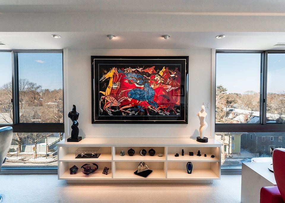 Western suburbsLarge double balconyRadiant heat floorsHarvard playing fieldsBoston skylineFloor-to-ceiling windows
