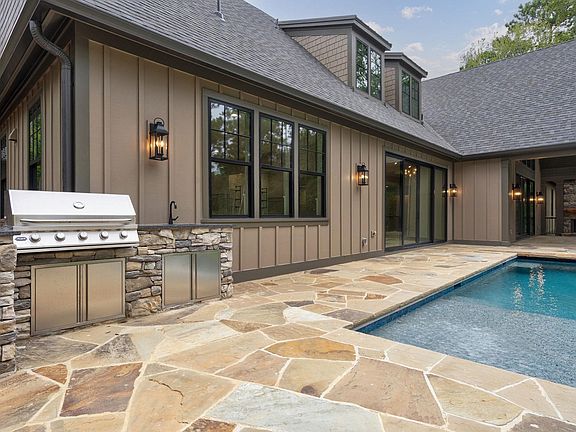 Nestled within the prestigious Reynolds Lake Oconee community, this exceptional new-construction estate offers an unrivaled blend of luxury, privacy, and breathtaking golf course views. Situated on over an acre—a rare find in Reynolds—this home overlooks the first hole of The Cove at the National Golf Course, providing a stunning backdrop for refined living. Spanning over 7,000 square feet of heated space, the thoughtfully designed floor plan seamlessly connects elegant interiors with outdoor living. The main level features a private pool, perfect for relaxation, while the expansive walk-out basement includes additional bedrooms and a spacious living area, ideal for entertaining. A true chef’s dream, the gourmet kitchen is outfitted with a top-of-the-line Viking appliance package, ensuring both style and functionality. Additional highlights include a three-car garage with a finished bonus space above, perfect for a home office or guest suite. Located just a short walk from the National Driving Range and the renowned National Tavern, this property offers both convenience and exclusivity. A private road provides a secluded approach, enhancing the estate’s serene atmosphere within this upscale neighborhood. Currently under construction, this home presents a rare opportunity for buyers to customize select finishes, making it uniquely their own. Experience the pinnacle of luxury living in Reynolds Lake Oconee. Membership to the club is available.