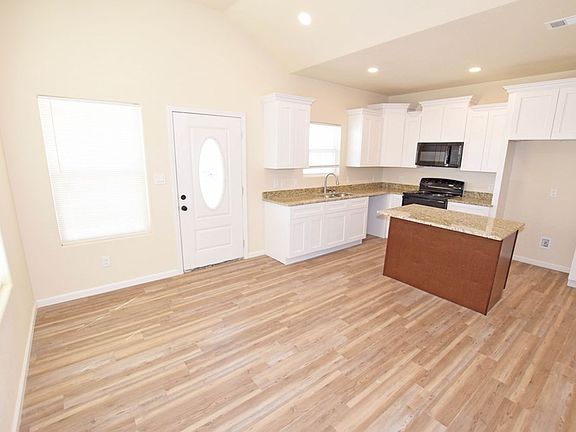 ABSOLUTELY NO CARPET, A MODERN DESIGN IN THIS OPEN-CONCEPT LIVING, BREAKFAST, AND KITCHEN WITH HIGH CEILINGS, CABINETRY. ABSOLUTELY NO WASTED SPACE, PERFECT SIZED YARD