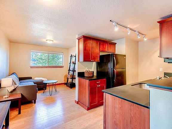 Remodeled condo close to downtown, COCC, shopping and restaurants 2 bedrooms, 1 bathroom Laminate flooring in the kitchen & dining, Carpet in the bedrooms Black appliances, Dark wood kitchen cabinets First floor unit, Small storage closet provided Washer/dryer in the unit, 680 sq ft Off street parking available No Pets Owner pays Gas/Water/Sewer/Garbage, Tenant pays Electric/Cable/Internet