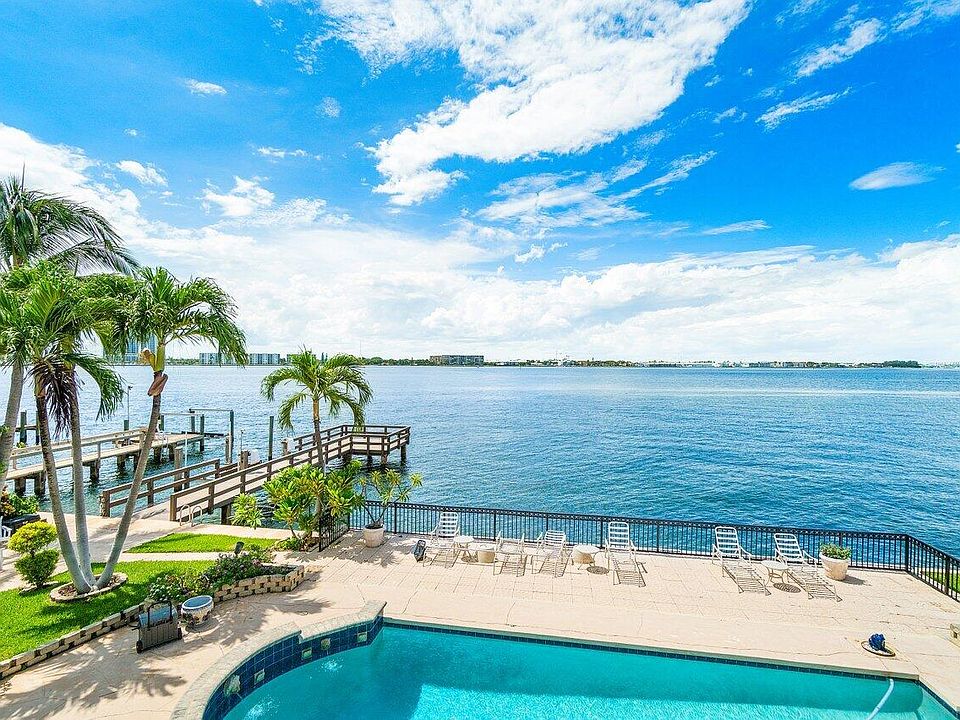 Discover a one-of-a-kind opportunity on Singer Island's most exclusive stretch of single family homes. Positioned on a private cul-de-sac street, 1010 Pine Point Road offers 144 feet of unobstructed Intracoastal frontage with a private dock, 14,000 lb lift, and deep water access just minutes from the inlet, making it a true boater's dream. This Mediterranean Revival residence spans more than 4,000 square feet under air and over 6,000 total, designed for both grand entertaining and quiet waterfront living. A dramatic double-height foyer with a custom cupola floods the home with natural light, leading to expansive living and dining areas finished in marble and natural stone. With four bedrooms, private elevator and a sprawling owner's suite, this home provides scale and gracious livability. Outdoors, a resort-style pool with a large sun deck, sweeping balcony views, and vivid Intracoastal sunsets create an unmatched backdrop for gatherings. The location at the northern tip of Singer Island offers tranquility while still delivering convenience. Walk to the beach and beach clubs, reach PGA Boulevard's fine dining and shopping in minutes, and arrive in Palm Beach or at PBI Airport within twenty minutes.