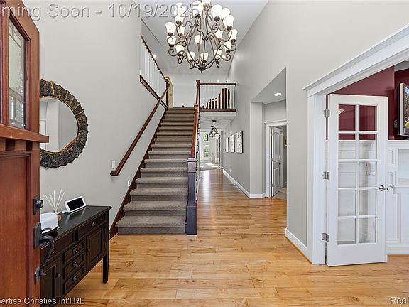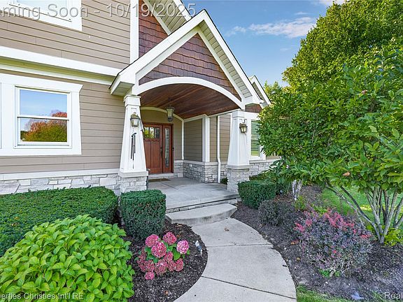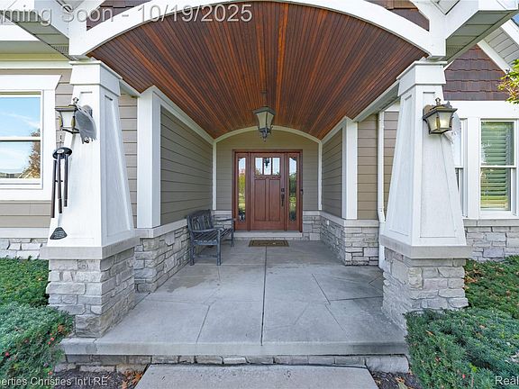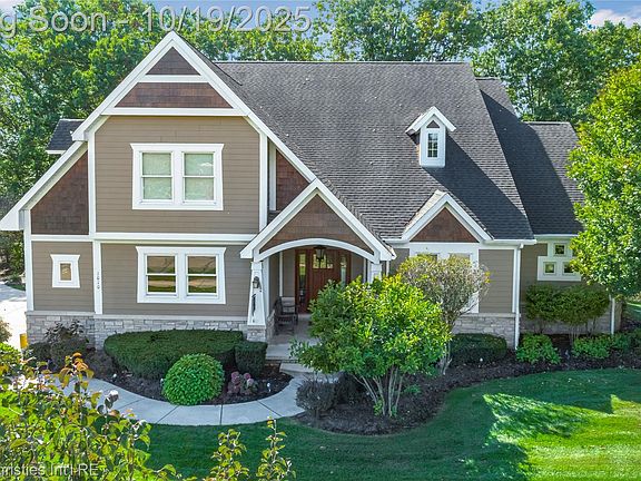 Your next chapter starts here in Riverside Commons. This stunning custom builder’s model Craftsman style home features 4 bedrooms, 3 full and 1 half baths, and a three-car garage. The first-floor primary suite is a private retreat, complete with dual closets, a jetted tub, and a deck and balcony overlooking tranquil wooded views. The home’s open layout flows over pine hardwood floors, from the gourmet granite kitchen with stainless appliances to the great room anchored by a stone fireplace. Enter the refined office/study through elegant French doors. Upstairs, two bedrooms share a Jack-and-Jill bath, while a third enjoys its own full bath. Architectural character abounds with a custom stone-and-wood elevation, durable Hardie siding, and a walkout lot featuring a lower-level patio. Mechanical updates include a new furnace and hot water heater and a reverse osmosis system. Enjoy access to the Huron River, community tennis/pickleball courts, and a basketball court, all just steps from your front door. Walk, bike, or ride your golf cart to explore downtown Milford’s shops, dining, and lively events.
