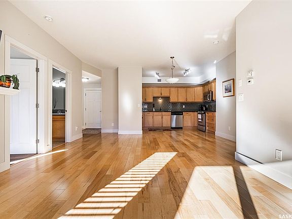 Welcome to 207 -1010 Ruth Street in the Churchill Gardens condo complex. This 2 bedroom, 2 bathroom condo is located in a prime south facing location with views of the inner courtyard. Originally purchased from the builder this unit has upgraded engineered hardwood throughout the living room, dining room, and kitchen. The kitchen cabinets were also upgraded, as well as the tile backsplash, and quartz countertops. The patio overlooks the inner courtyard that is meticulously groomed and well used by the residents in the building. Inside there's a cozy gas fireplace in the living room for cooler months. The primary bedroom is spacious and bright with a walk in closet and it's own 4 piece bathroom. This unit also has a second bedroom for guests as well as in-suite laundry. The building is quite unique with it's large communal area for card games or pool with friends. There is also a guest suite for when friends and family come to visit. The underground parking space is #66, there's a storage unit (#207), and a car wash in the underground parking. Homes in this complex are well sought after due to the excellent location and amenities within the building so don't hesitate to reach out for a private showing.
