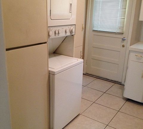 2 Bedroom, 1 Bath downstairs "retro" style unit in great location near everything. Original wood floors throughout, ceramic tile in bath and kitchen. Appliances include oven/range, refrigerator, dishwasher and stackable washer/dryer.. One small dog (under 20 lbs. when fully grown) or 1 cat allowed. $300 pet fee applies due to wooden floors. Close to lots of shopping, grocery stores and restaurants. Convenient location right in the heart of Lafayette. Older, "vintage" style apartment building.