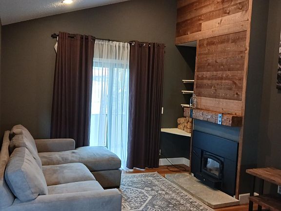 Available September 2025. Fresh from top to bottom. Fresh paint, new fireplace, upgraded kitchen, new appliances, flooring and more. This wonderful upper level apartment is classy, comfortable and larger than expected. Private deck to view wildlife and the world go by right from the living room. Views of the mountains, convenient location close to Golf Course, walking trail and the Schools.