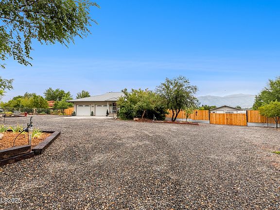 A Hidden Gem on 1.38 Acres of Pure Nevada Charm! Welcome to your own slice of paradise, where country serenity meets endless possibilities. This 3-bedroom, 3-bath ranch-style home features a spacious den and a 780 ft. finished basement ready for your personal touch. Whether you're dreaming of a cozy retreat or a vibrant gathering space, this home is the canvas. Step outside and discover an overflow of flourishing fruit trees, grapes and berries, offering seasonal harvests and a tranquil orchard vibe. The expansive grounds are thoughtfully designed for both relaxation and recreation. Equestrian Ready with a horse stall, arena, and turnout area make this property ideal for equine enthusiasts. A 40x40 detached garage, separately metered, provides ample room for hobbies, storage, or a workshop, perfect for car collectors, or all your outdoor toys. Always wanted a garden? Enjoy the spacious greenhouse. Come and unwind in the beautifully landscaped outdoor space hot tub included to relax while stargazing, this property is designed for all ages. From quiet mornings to lively gatherings, the property offers a lifestyle that's both peaceful and playful. This home is more than a residence, it's a retreat, a playground, and a place to grow. Come experience the magic of wide-open skies, fresh air, and the kind of space that inspires.