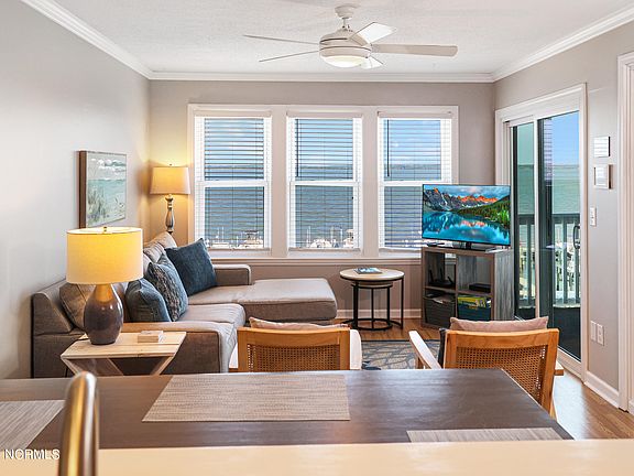 Welcome home to this SOUND VIEW gem offering unparalleled views of Bogue Sound complemented by a coveted Boat Slip in the Marina - the epitome of coastal living awaits! Step into luxury with this two-bedroom condo plus a flex space, poised to enchant from the moment you arrive. Indulge in the allure of a modern kitchen with updated stainless steel appliances, and a charming island with a breakfast bar, seamlessly integrated into the expansive living space, creating an atmosphere of effortless elegance. Host gatherings with ease in the designated formal dining area, perfect for entertaining friends and loved ones. Retreat to the tranquility of the primary bedroom, complete with an en-suite bath, promising moments of relaxation and rejuvenation. Mariner's Point beckons with its array of amenities, including a marina with boat slips, a convenient boat-launching ramp, a sparkling community pool, and tennis courts for active leisure pursuits. Plus, with direct access to the beach just steps away, every day presents an opportunity for coastal adventures. This unit even features a single staircase, for added privacy, and extra owners exterior closet, and newer HVAC. Experience the pinnacle of coastal luxury - seize the chance to embrace island living at its finest in this stunning 2-bedroom condo! Property conveys furnished with few exceptions.